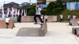 場所的にもイベントの中心に位置し、平尾君のマイク・パフォーマンスと軽快うな音楽、若者の動きのある軽快なスケボー・マウンテンバイクのパフォーマンスにより、非常に盛り上がりのあるイベントになりました。